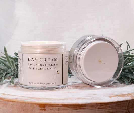 Tallow Face Cream | Bee Propolis, Non-Nano Zinc Oxide & Vitamin E | Natural Moisturizer | Grass Fed Suet Tallow Skincare | Pump Jar